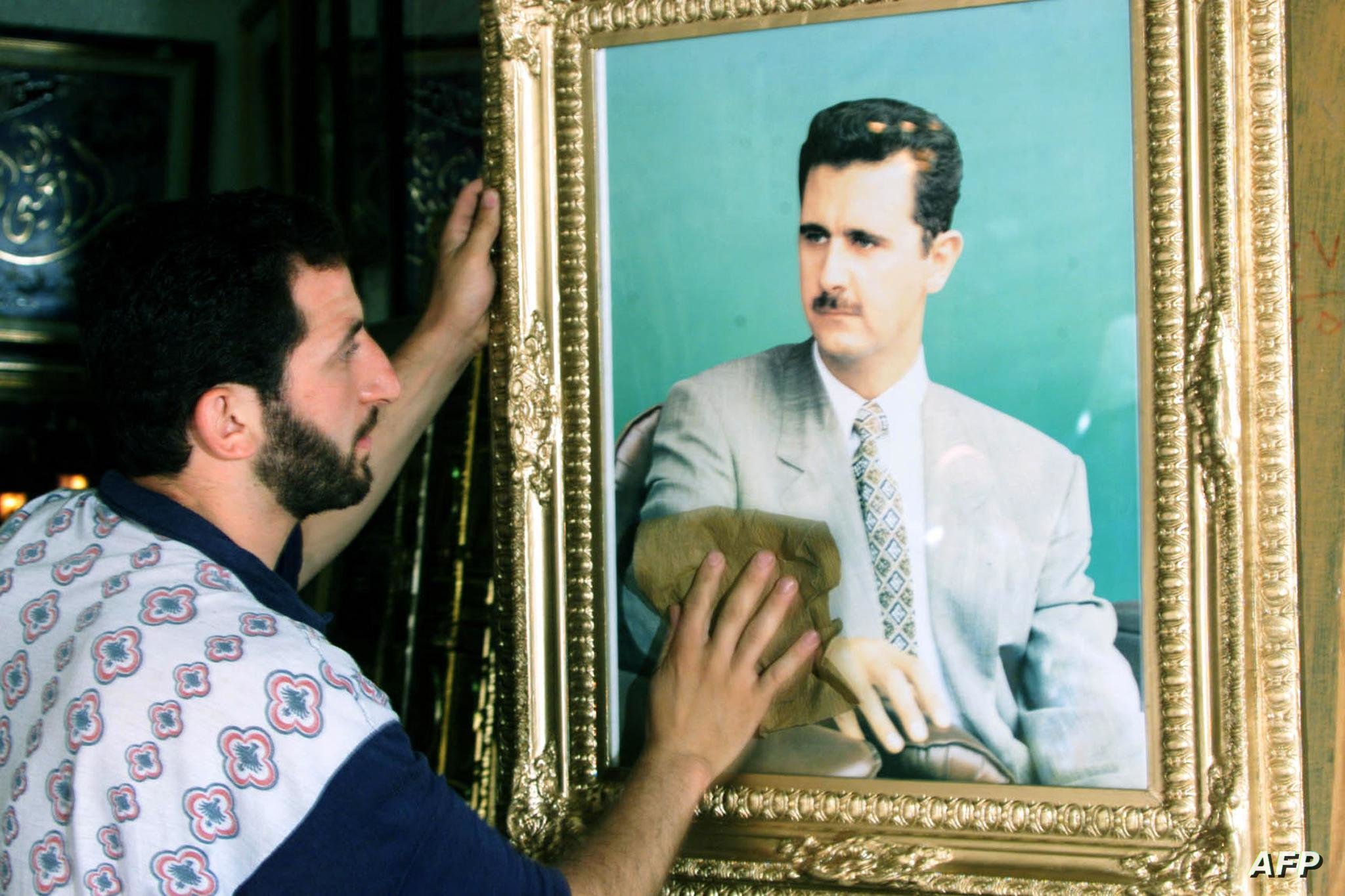 A shopkeeper cleans a portrait of Syrian heir apparent Bashar al-Assad in Damascus 20 June 2000 as the ruling Baath party prepared to wind up its historic congress by consecrating Bashar as its secretary-general and choosing a new leadership body. Bashar takes over the title from his father, President Hafez al-Assad, who died 10 June after ruling Syria with an iron grip for 30 years. (Photo by RAMZI HAIDAR / AFP)