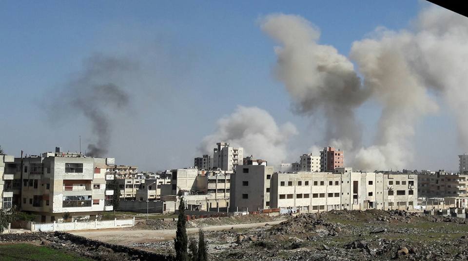 وجه ناشطون من حي الوعر في ريف حمص نداء استغاثة للمنظمات الدولية مطالبين بوقف قصف الطيران الحربي الروسي والسوري