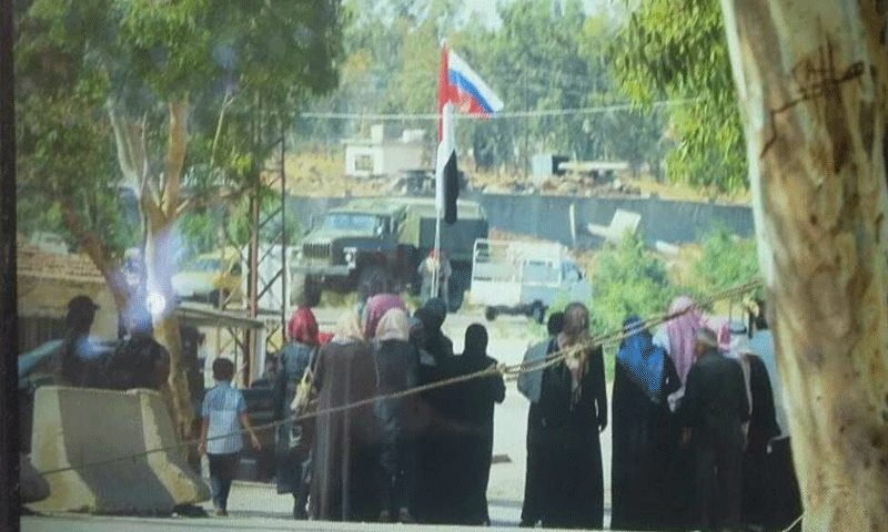 وصل عدد من عناصر الشرطة الروسية إلى معبر الدار الكبيرة بريف حمص الشمالي، اليوم الاثنين، وقاموا برفع العلم الروسي بعد تسلمهم الحاجز من قوات النظام تطبيقاً لهدنة وقف التصعيد.