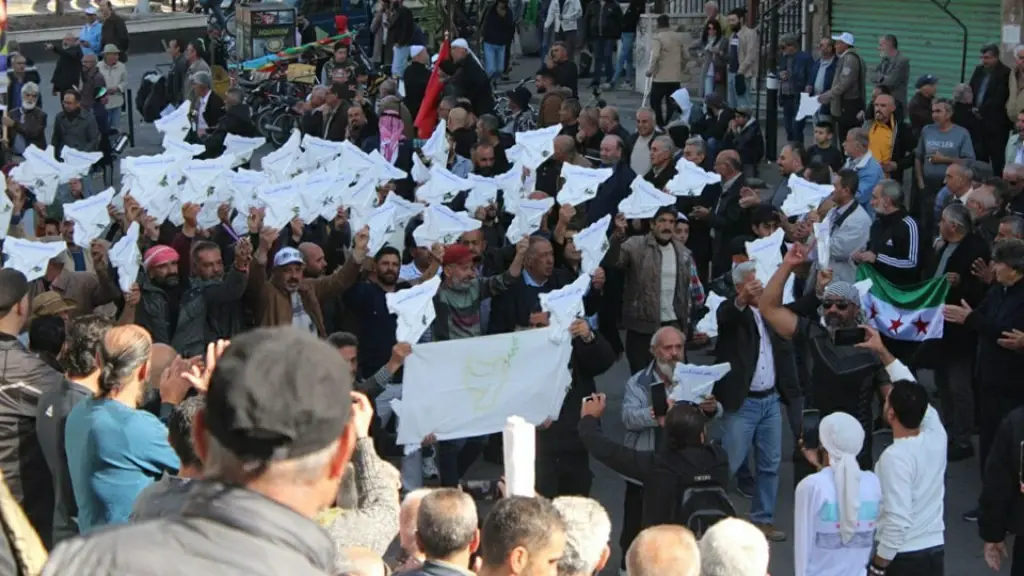 وسجلت المظاهرات حضور مختلف فئات المجتمع بما في ذلك رجال الدين الذي وصولوا كتفا لكتف للتدليل على وحدة الموقف، فيما رفعت النساء أغصان الزيتون والورود ومجسمات مصغر لخارطة سوريا وأطلقن طيور الحمام للتدليل على السلام ووحدة الشعب السوري ومطالبه بالحرية.