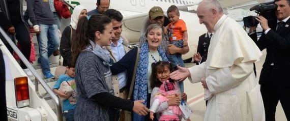 وقال البابا فرانسيس إن قرار جلب 12 لاجئاً سورياً إلى إيطاليا من اليونان على طائرته كانت لفتة إنسانية خالصة لاعلاقة لها بالسياسة.