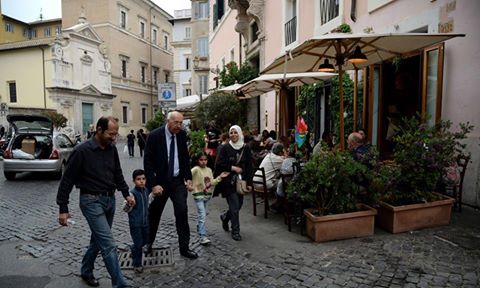استيقظ الـ 12 طالب اللجوء السوري على عالم جديد في قلب مدينة روما يوم الاثنين في حي تراستيفير الصاخب ، الذي أصبح موطنهم الجديد المؤقت بعد أن أخذ معه البابا فرانسيس العائلات المسلمة الثلاثة – 6 بالغين وستة أطفال – بعد زيارته القصيرة لليسبوس في مطلع الأسبوع.