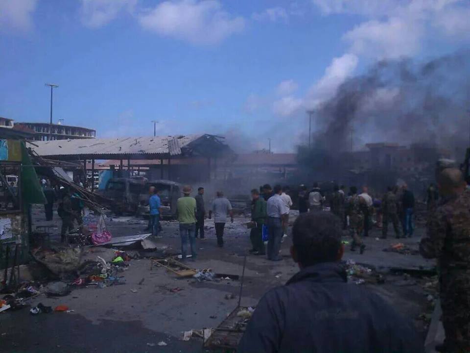 وذكرت مصادر إعلامية أن ثلاثة تفجيرات عن طريق سيارات مفخخة ضربت الكراج الجديد في مدينة طرطوس، ماتسبب بسقوط عشرات القتلى والجرحى.