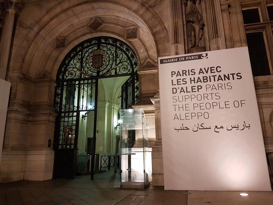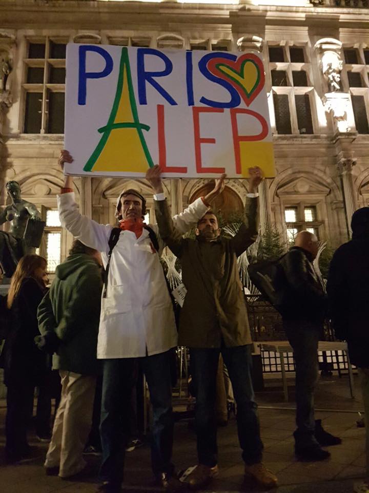 وعبر المجتمعون عبر كلمة القاها “محافظ باريس” , رغبتهم بالذهاب الى أحياء حلب الشرقية تحت مظلة الامم المتحدة , للوقوف كدروع بشرية بوجه قصف طائرات بشار وروسيا لمدينة حلب , بعد الحصول على التراخيص المناسبة .