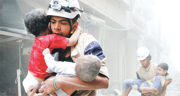 ويعرض الفيلم لمحة قصيرة عن عمل رجال الخوذ البيضاء المروع مع دخولهم مبان بعد فترة وجيزة من تفجيرات بالقنابل، وتنقيبهم بين الأنقاض الثقيلة والغبار الكثيف بحثا عن ناجين، وفي أحد المشاهد يتم انتشال طفل في حالة رثة وهو يبكي من تحت أنقاض مبنى بعد أن ظل محاصرا لساعات.