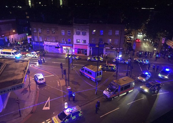 دهست سيارة فان يستقلها 3 بريطانيين مجموعة من المصلين لدى خروجهم من صلاة التراويح وتناولهم طعام السحور قرب مسجد فينسبري بارك، أو المسجد الكبير في شمال لندن.