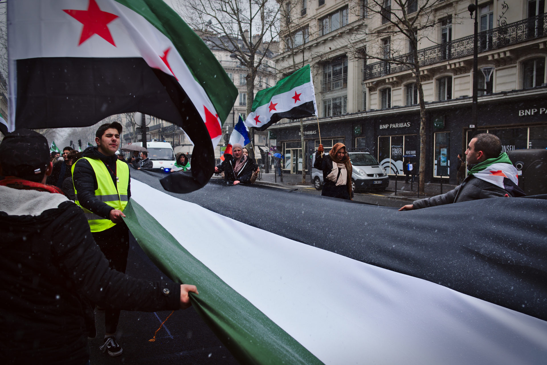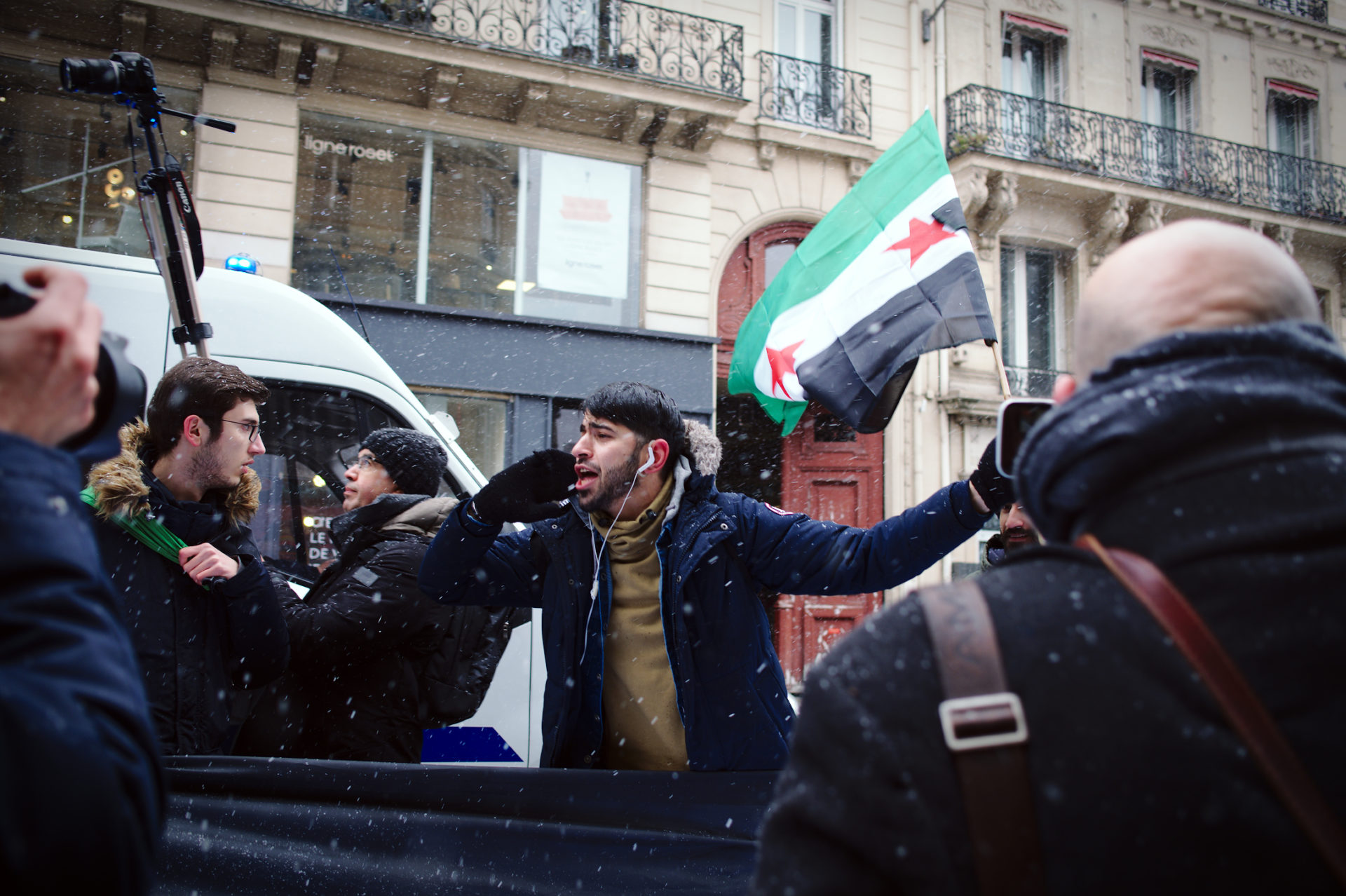 Différentes organisations de la diaspora syrienne, humanitaires, politiques et syndicales appelaient au rassemblement sur la place du Châtelet avec comme mot d’ordre « Ensemble pour la Syrie libre.