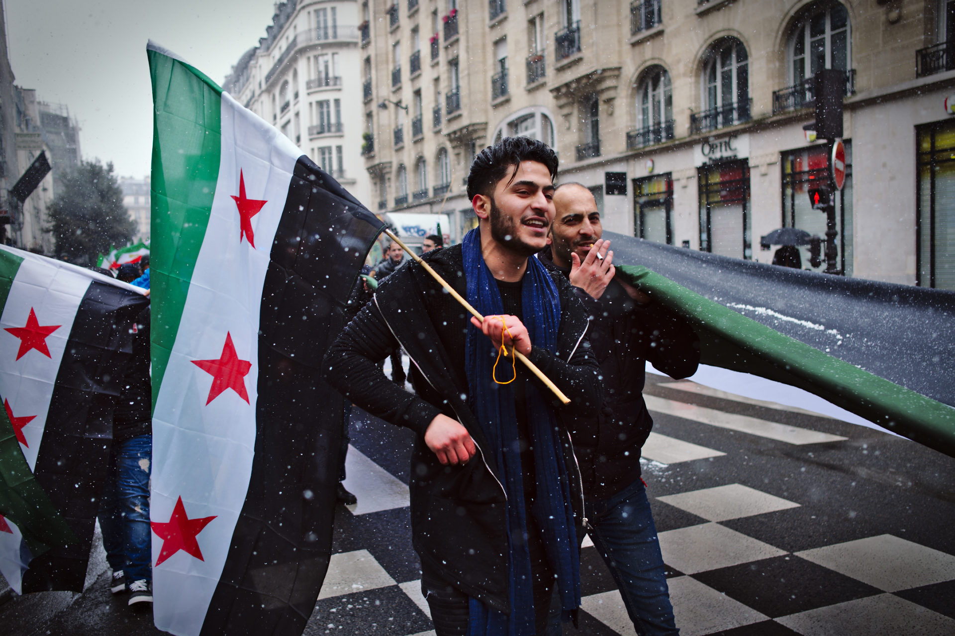 Ce dimanche 18 mars, la manifestation parisienne à l’occasion du septième anniversaire de la révolution syrienne a eu lieu sous la neige.