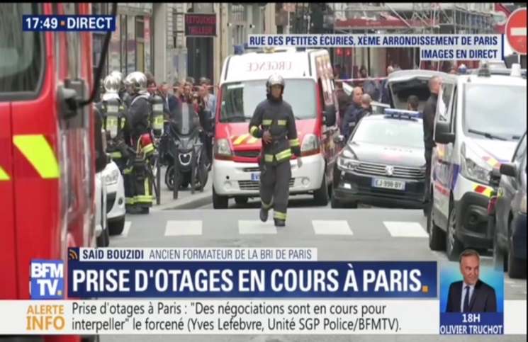 وقال كولومب “”لقد تم القبض على الشخص ،وان الرهائن خارج دائرة الخطر” . كانت شرطة باريس قد ذكرت في تغريدة لها على موقع التواصل الاجتماعي “تويتر” اليوم الثلاثاء، إنها تتعامل مع حادث احتجاز رهائن في شمال وسط المدينة.