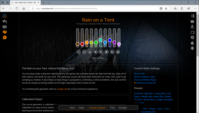موقع MyNoise مبني على هذه المقولة ! حيث أن فكرته عبارة عن استخدام الضجيج الذي تستمتع به اذنُك من اجل إخفاء الضجيج الخارجي او الاصوات المزعجة التي لا تريد سماعها، فكل ما عليك هو ارتداء سماعة أذن وزيارة هذا الموقع وتشغيل ايًا من التأثيرات الصوتية الرائعة التى إما تساعدك على الاسترخاء والاستجمام كالأصوات الطبيعية، أو تلك التى تساعدك على التركيز وعدم الانشغال بأي أصوات محيطة. ربما قد ترى أن الأمر غير فعال لكنه فى الواقع شيء مذهل، فقط قم بتجربته.