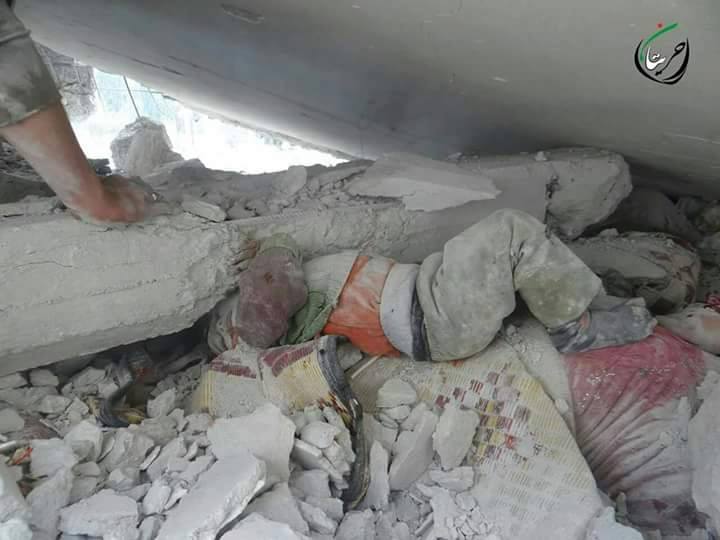 أثار تسجيل مصور , نشرته تنسيقية مدينة حريتان، يظهر فرق الدفاع المدني، تنقذ طفلًا من تحت الأنقاض داخل مدينة حريتان في شمالي حلب، غضب السوريين .