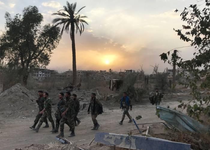 قُتل مجموعة عناصر من قوات النظام السوري، وأُصيب عناصر آخرون بجروح خطيرة، يوم الإثنين، جراء هجوم مباغت لتنظيم “الدولة الإسلامية” استهدف المجموعة أثناء مهامها العسكرية في حملة تمشيط بادية دير الزور شرق سوريا، من خلايا التنظيم.
