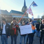 واجتمع المئات من اللاجئين السوريين، بمشاركة بعض الشبان والشابات السويديات، الذين تضامنوا عبر رفع اللافتات والشعارات تنديدا بالحروب التي لاتفرق بين كبير أو صغير.