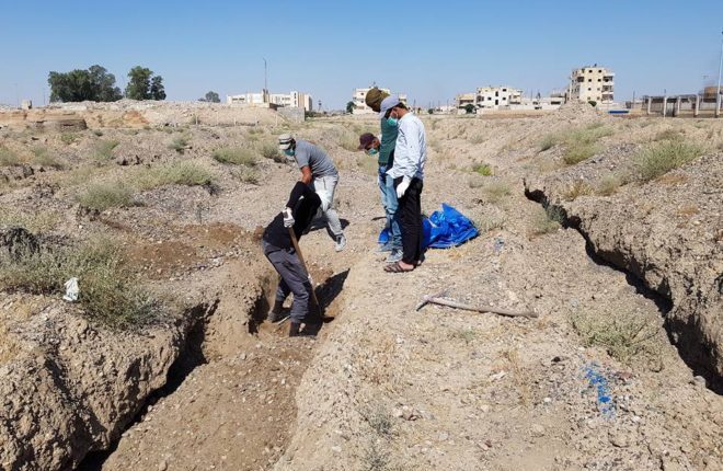 ويوم أمس، عثر على مقبرة جماعية تضم جثامين 21 شخصا هوياتهم مجهولة، في أرض زراعية غير مستثمرة قرب مطار دمشق الدولي في ريف دمشق.