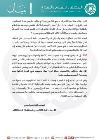 تحديث | المجلس الإسلامي السوري: خامنئي كبير الدواعش