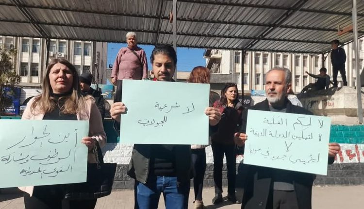 تجمع العشرات من أبناء مدينة السويداء، من ناشطين وناشطات، في ساحة الكرامة وسط المدينة، خلال وقفة احتجاجية عبّروا فيها عن رفضهم لما وصفوه بـ”مصادرة قرار الشعب السوري بقرار عسكري”.