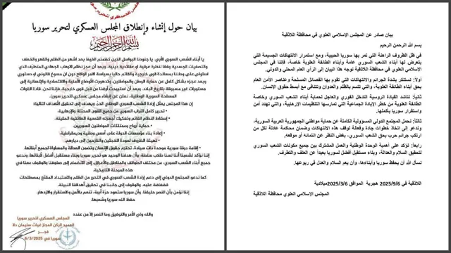 كما اتُهمت الدولة السورية في البيان باتباع سياسات طائفية ودُعي لاستجلاب الاحتلال إلى سوريا تحت ذريعة الحماية الدولية.