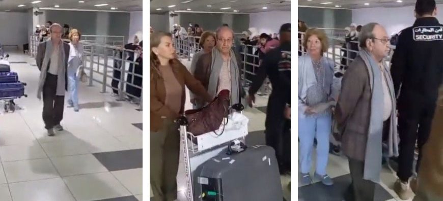 وأظهر الفيديو لحظة وصوله إلى مطار دمشق الدولي برفقة زوجته، دون أن تُلقى عليهما أي مظاهر استقبال أو ترحيب، فيما بدت على وجهيهما علامات الارتباك والريبة.
