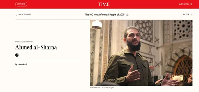الرئيس أحمد الشرع بين أبرز 100 شخصية عالمية في تصنيف “تايم” لعام 2025