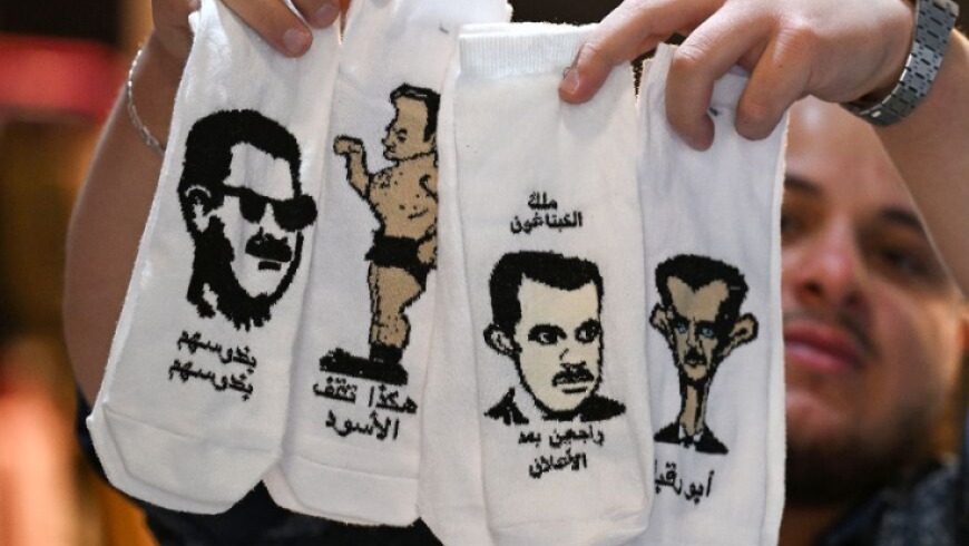 في متجر باسل الساطي للتذكارات والواقع في سوق وسط دمشق، ثمة جوارب رسمت عليها صور كاريكاتورية تستهزئ بالرئيس السوري المخلوع بشار الأسد وعائلته التي كان الجميع يخشاها في زمن من الأزمان، والآن أصبحت تلك الجوارب تباع كما تباع الفطائر.