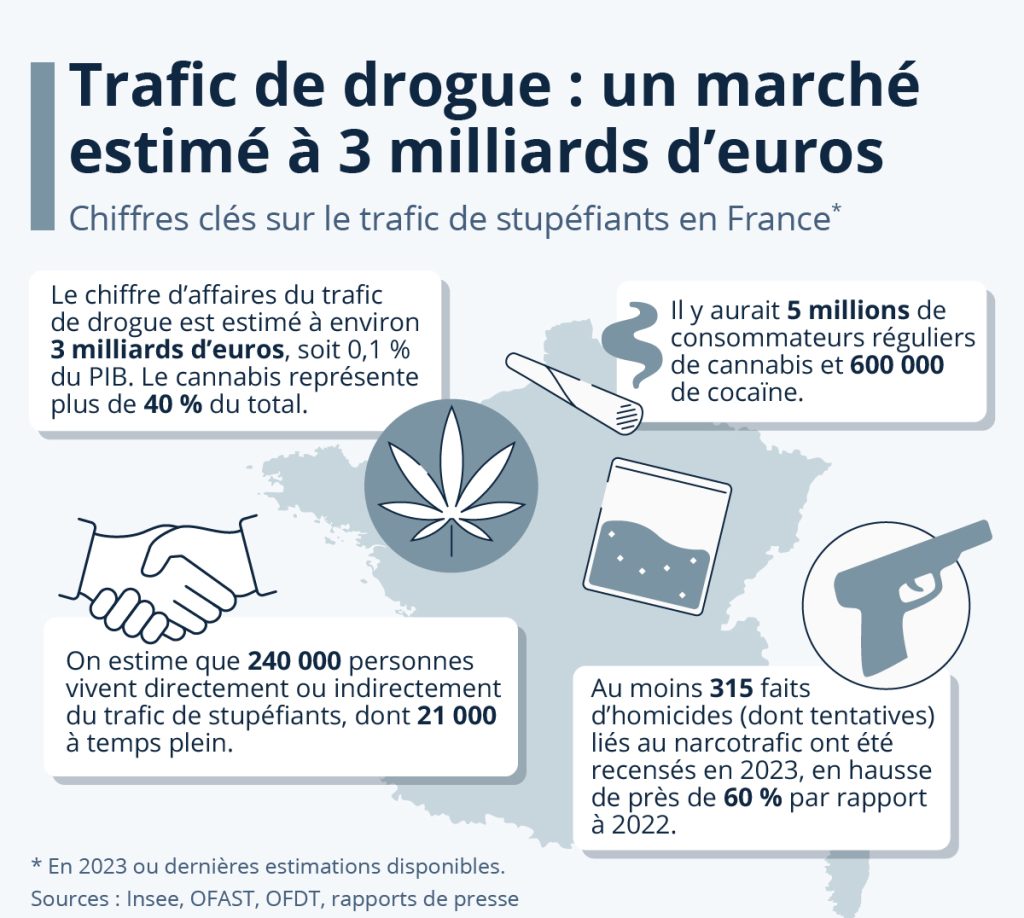Cette progression touche aussi bien les grandes agglomérations comme Paris ou Marseille que les zones rurales, auparavant épargnées. Le ministre de l’Intérieur, Gérald Darmanin, a qualifié cette propagation de « cancer » qui ronge le pays, sans distinction territoriale.