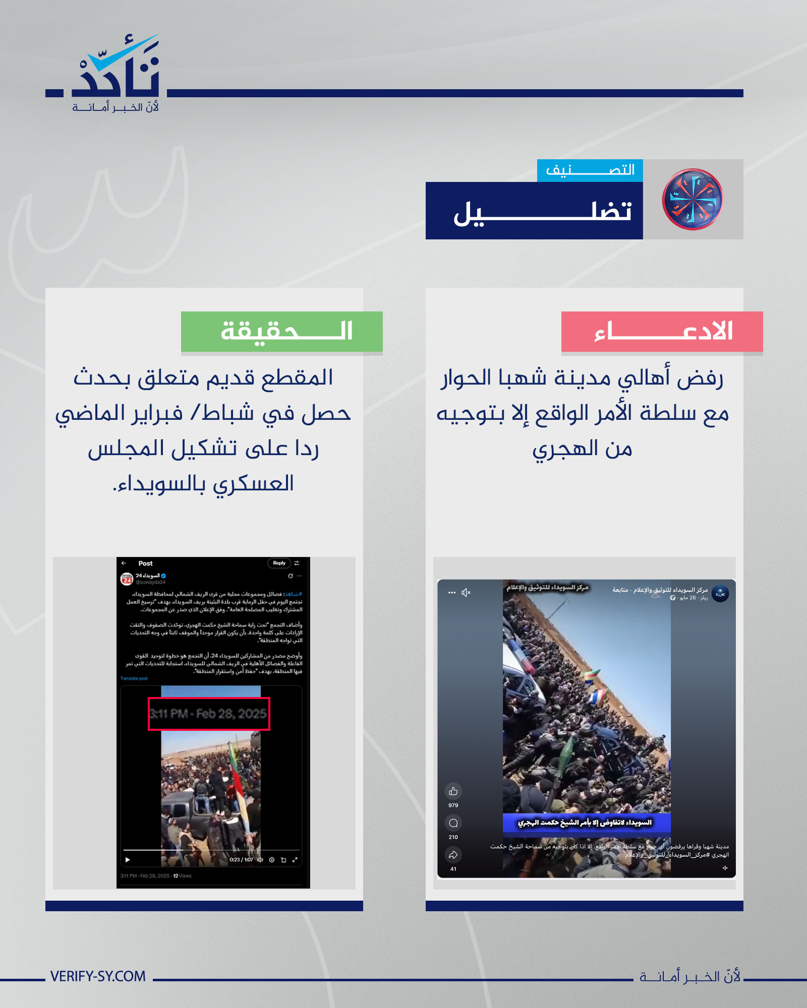 هذا الادعاء الخطير، الذي يفتقر لأي دليل أو إثبات، يأتي في وقت حساس تمر فيه سوريا بمرحلة من التعافي النسبي، ويبدو واضحاً أنه يهدف لإثارة فتنة طائفية وإرباك الرأي العام، خصوصاً أنه يرفق هذه الادعاءات بتواريخ وتنبؤات سياسية أشبه بالخيال.