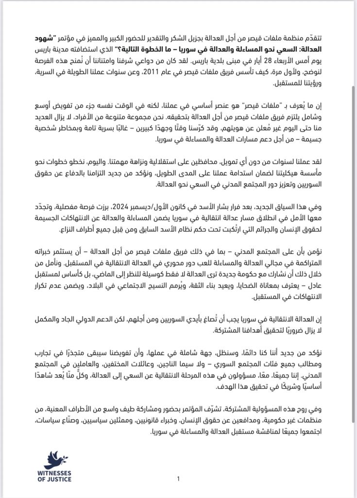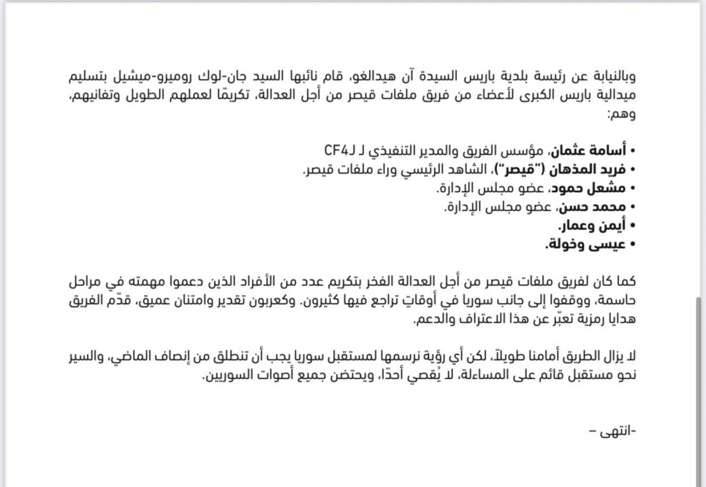 بلدية باريس تكرّم فريق “قيصر” خلال مؤتمر العدالة الأول