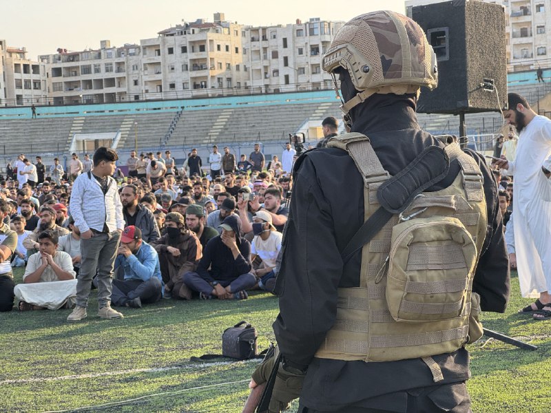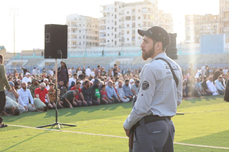 وفي محافظة إدلب، انتشرت وحدات الأمن الداخلي في محيط الملعب البلدي، الذي شهد تجمعًا واسعًا للمصلين لأداء صلاة العيد، كما تم تأمين الطرق المؤدية إليه لضمان انسيابية الحركة وسلامة المشاركين.