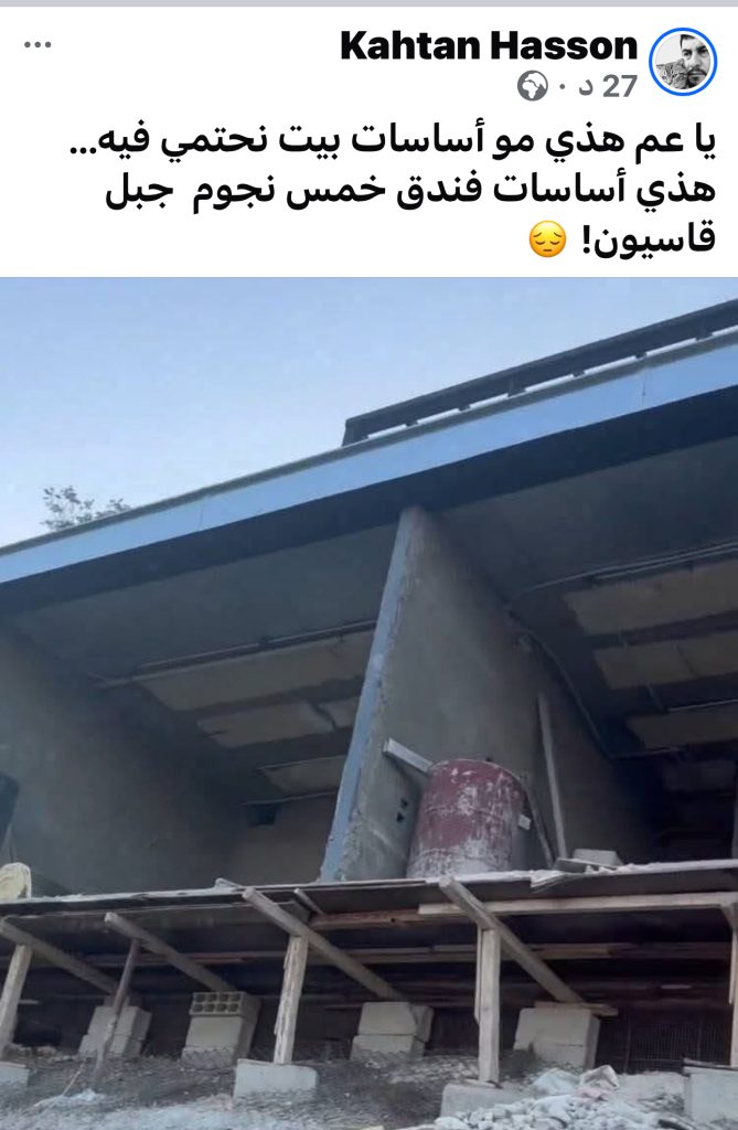 ثانيًا، أن يكون المشروع قد بدأ دون دراسات جيولوجية وهندسية كافية، ودون تحاليل للتربة من حيث التركيب المعدني، قدرة التحمّل، الرطوبة، تأثيرات الزلازل والانهيارات الأرضية، وهو أمر خطير جدًا على منطقة مأهولة وقابلة للانزلاق والتصدع.”