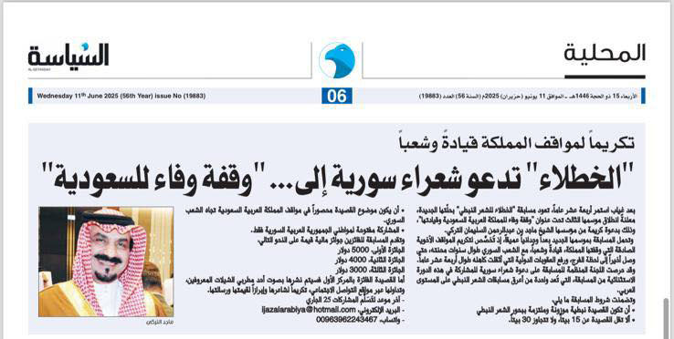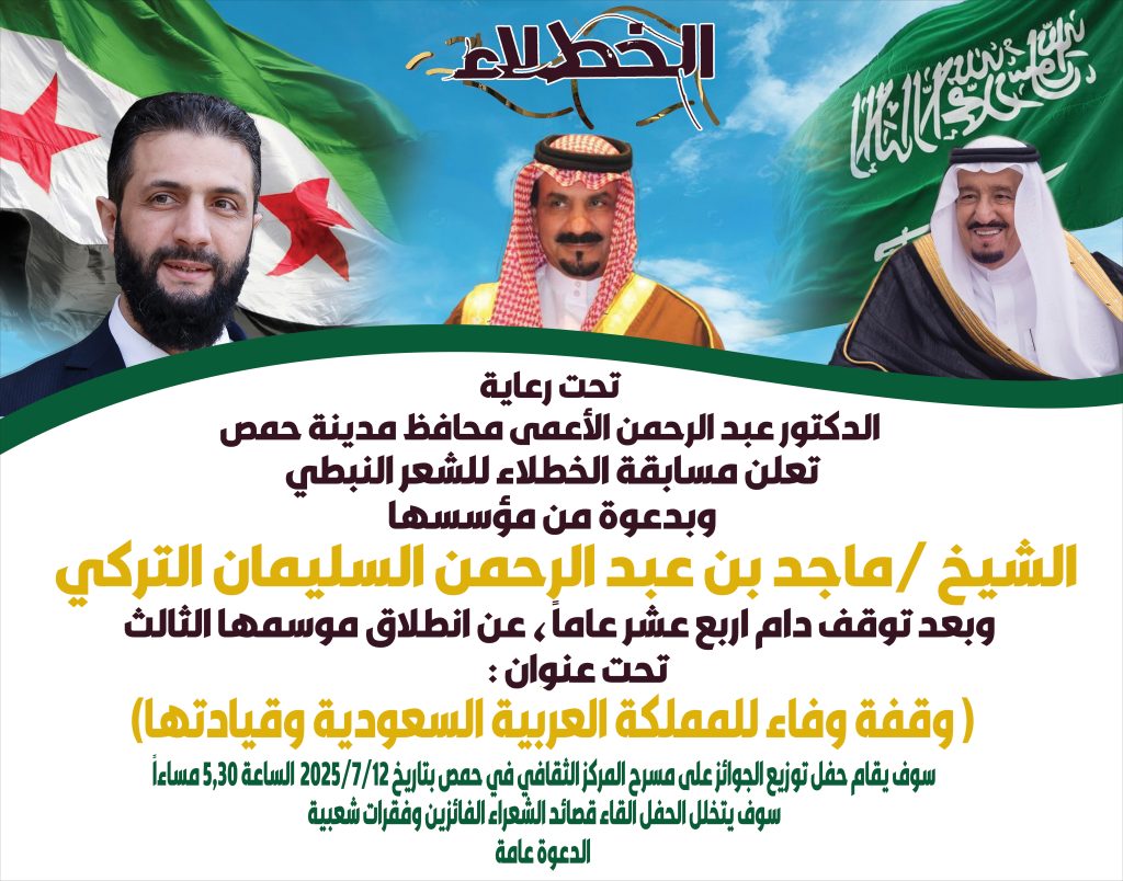 “الخطلاء” تعود بعد 14 عامًا : مسابقة شعرية سورية كبرى لشكر المملكة العربية السعودية على دعمها ووقوفها مع الشعب السوري