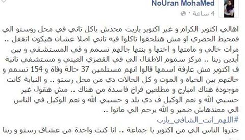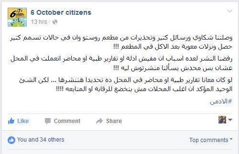 أكدت مواقع مصرية مؤيدة للرئيس المصري عبد الفتاح السيسي، أن دوريات مديرية الصحة داهمت مطعماً سورياً شهيراً في مدينة السادس من أكتوبر، قرب القاهرة، بعد وقوع 37 حالة وفاة و154 حالة تسمم، بسبب تناول الطعام في مطعم “روستو” السوري الشهير، فيما وصفت صفحات ومواقع أخرى هذا الخبر بأنه كذبة بحجم الفيل بسبب تفوق المطاعم .