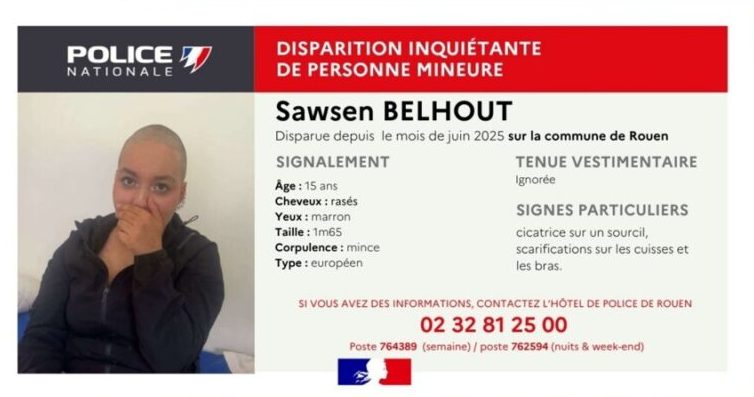La police de Rouen lance ce vendredi 11 juillet 2025 un appel à témoins après la disparition inquiétante de Sawsen, une adolescente de 15 ans portée disparue depuis le mois de juin.