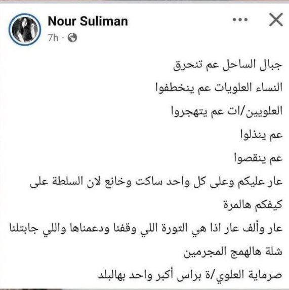 وأعربت يوسف عن قلقها وطالبت كلاً من وزيرة الشؤون الاجتماعية هند قبوات، ووزير الإعلام حمزة المصطفى، والرئيس الانتقالي أحمد الشرع، بضمان سلامة نور سليمان.