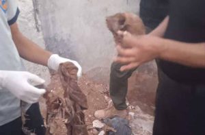 وفي السياق، انتشلت فرق الدفاع المدني السوري يوم أمس الأحد رفات جثتين مجهولتي الهوية في حي كرم الزيتون، تعودان لمدنيين قضيا خلال المجازر التي ارتكبها النظام عام 2012. وجاء ذلك بعد أن عثر أحد الأهالي على الرفات أثناء قيامه بأعمال حفر لبناء قرب جامع الرفاعي.