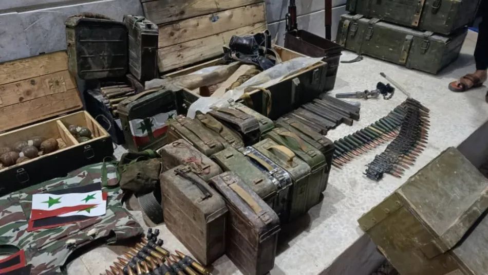 وأسفرت العملية، بحسب البيان، عن مصادرة كميات من الذخيرة الحية المتوسطة والخفيفة، وطلقات قناصة، وعدد من القذائف المضادة للدروع من نوع “آر بي جي”. بالإضافة إلى ذلك، تم العثور على أعلام ورموز تمثل نظام الأسد السابق.