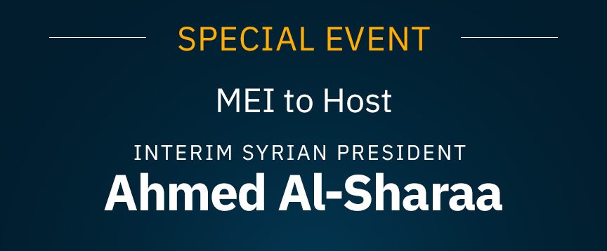 The Middle East Institute (MEI) will host Syrian Interim President Ahmed Al-Sharaa in New York City, on the margins of the UN General Assembly, for a timely conversation with @Charles_Lister, Senior Fellow and Director of MEI’s Syria Initiative.