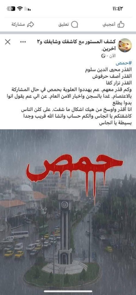 غير أن هذا التصعيد تزامن مع هزة عنيفة في الشارع الحمصي إثر ارتكاب جريمة “زيدل” المزدوجة، حيث عُثر على الزوجين الخالدي -وهما من المكوّن السني- مقتولين داخل منزلهما بطريقة وُصفت بالوحشية. المعلومات الأولية تؤكد تهشيم رأس الرجل بالحجارة والتمثيل بجثته، فيما أُحرقت زوجته داخل المنزل، في حين عُثر على عبارات طائفية مكتوبة بدمائهما، ما اعتبره الأهالي محاولة واضحة لإشعال الفتنة.
