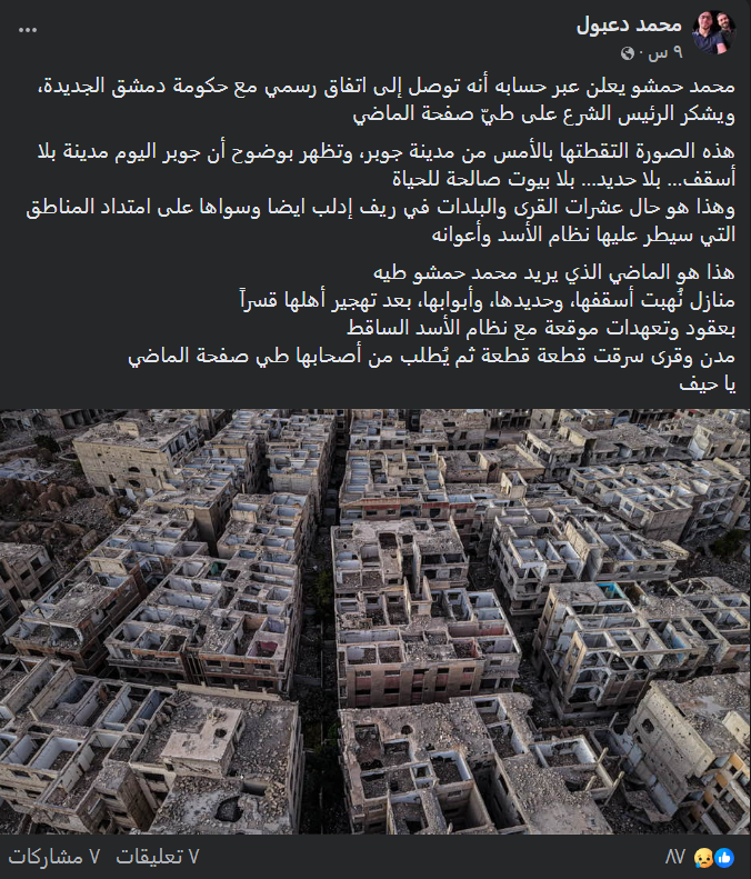 هذا ليس بناءً، بل هو هدم لما تبقى من ثقة، وتكريس لثقافة الإفلات من العقاب التي دمرت سوريا.