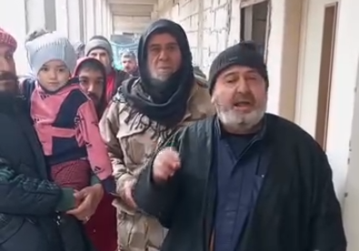 “نحن أهالي المشاعات في حماة… النظام المجرم هدم لنا بيتنا، وهلأ البلدية استملكت على أراضينا. هذا البناء للبلدية، حطينا أغراضنا بقلبه مشان نتاوى نحن وحريماتنا ونساءنا. هلأ جتنا إنذارات وبدنا يزدونا بالشارع. هلأ هذا إنصاف؟ هذا عدل؟”