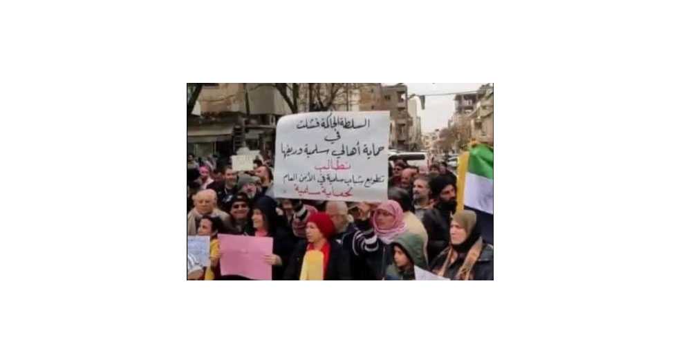 شهدت مدينة سلمية وقفة احتجاجية في ساحة الحرية تحت شعار: “لا بناء بلا أمان، ولا أمان دون ضبط السلاح”، دعا إليها ناشطون مدنيون للمطالبة بوضع حدّ لانتشار السلاح غير المنضبط ومنع استخدام السيارات المظللة (المفيّمة) في الجرائم.