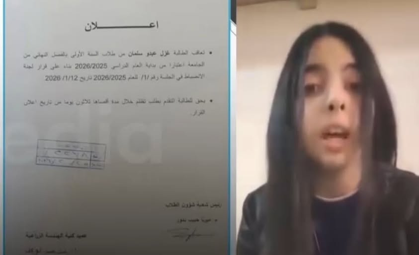 أصدرت إدارة جامعة اللاذقية قراراً إدارياً يقضي بالفصل النهائي للطالبة غزل عبدو سلمان، المقيدة في السنة الأولى بكلية الهندسة الزراعية، وحرمانها من متابعة تعليمها الجامعي اعتباراً من العام الدراسي 2025/2026. وجاء هذا القرار بعد سلسلة من التجاوزات التي نُسبت للطالبة، والتي أثارت موجة واسعة من الجدل في الأوساط الجامعية والاجتماعية السورية.