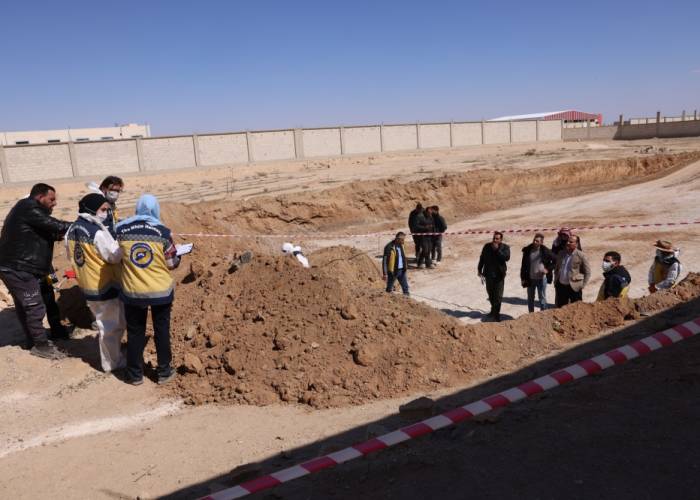 أعلنت فرق الدفاع المدني السوري انتشال رفات 14 شخصاً من موقع في منطقة عدرا الصناعية بريف دمشق، بعد العثور عليها أثناء أعمال حفر لإنشاء منشأة غذائية في المنطقة.