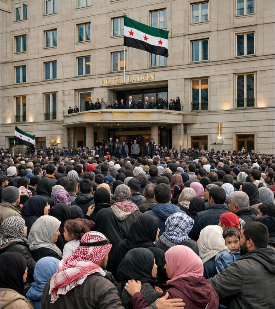 ميدانياً، لم تكن برلين أقل صخباً؛ إذ تزامنت مسيرات مؤيدة ترفع الأعلام السورية في ساحة “باريسر بلاتس” مع تظاهرات محدودة للجالية الكردية وقوى يسارية ألمانية تندد بالزيارة.