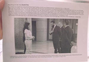 وتظهر الصورة ضمن درس بعنوان “التحية بالمصافحة أو بدونها”، حيث تُستخدم كمثال تطبيقي في شرح أنماط التحية والتفاعل في السياقات الثقافية المختلفة. ويعرض النص المرافق خلفية تاريخية عن المصافحة في المجتمع الألماني، إضافة إلى تطورات قانونية مرتبطة بها.