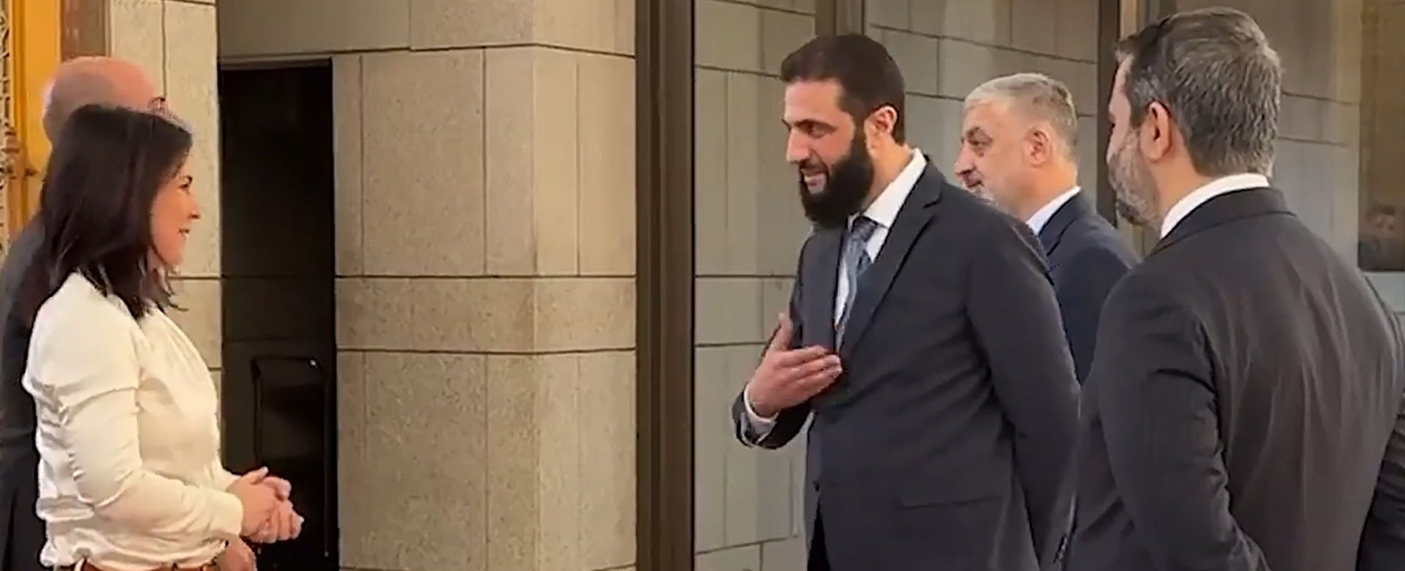 أدرجت مواد تعليمية متداولة ضمن كورسات الاندماج في ألمانيا صورة تُظهر لقاءً دبلوماسيًا في دمشق، يجمع وزيرة الخارجية الألمانية أنالينا بيربوك مع الرئيس السوري أحمد الشرع.