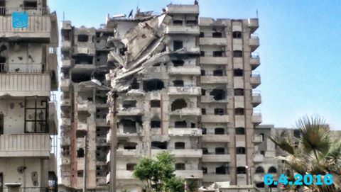 بسبب قصف النظام انهيار جزء من مبنى “عمال الدولة” بحي الوعر بحمص
