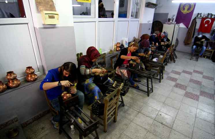 في “غازي عنتاب” التركية… نساء يزاحمن الرجال في نقش النحاسيات